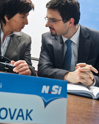 Poglejte spletno stran NSi. Tako kot na predvolilnem plakatu je beseda NSi napisana z belo (domobransko) bravo, zadaj pa stoji rdeča (komunistićna) pika.